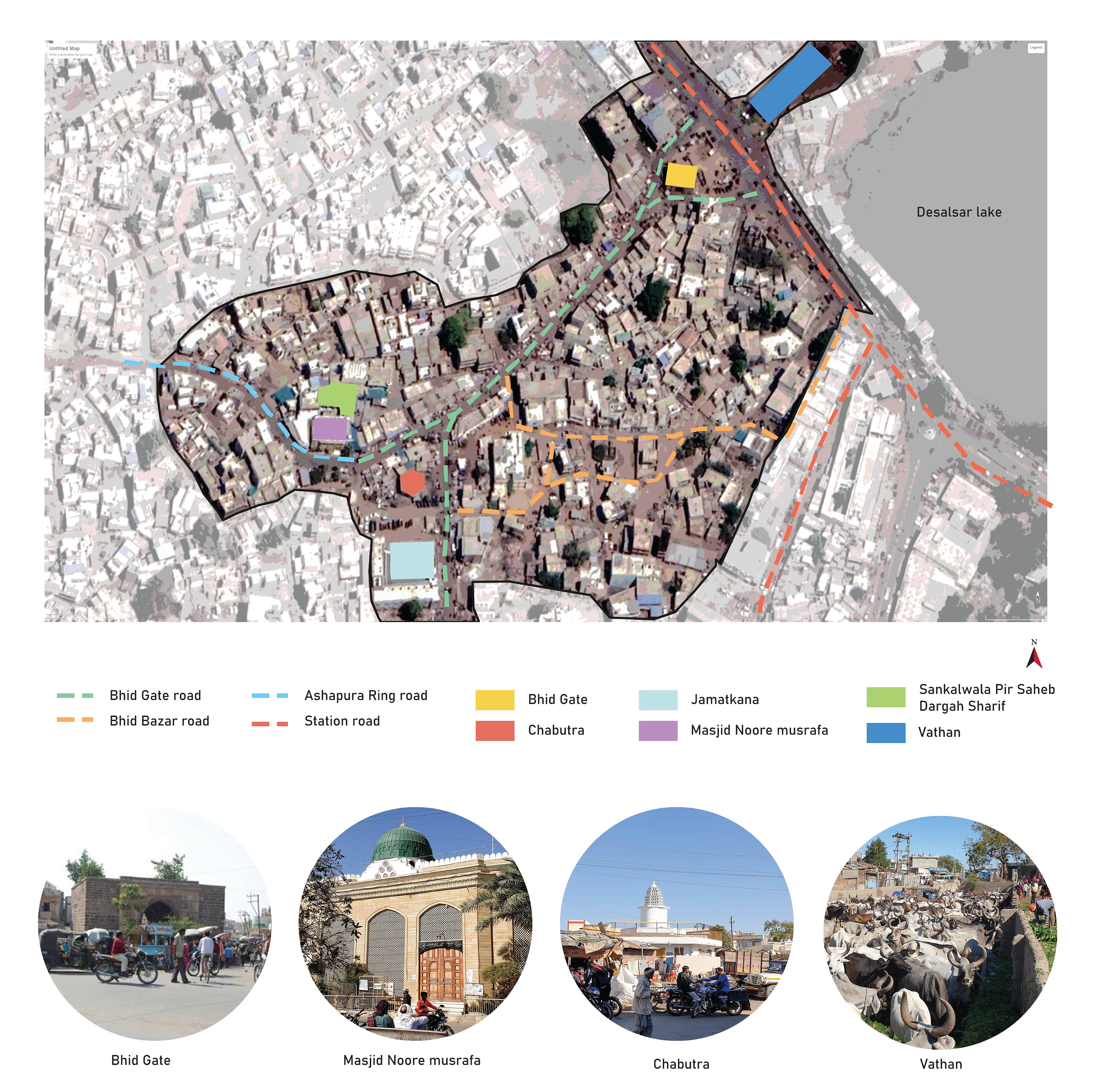 The project "Streets as Public Space" is a joint research effort by Hunnarshala Foundation, Bhuj, and The Centre for Policy and Governance, TISS, Mumbai. It aims to explore the role of public spaces in Southern cities, focusing on themes like vulnerability, social reproduction, and sustainability. The research specifically looks at the streets of Bhuj, analyzing their impact on the city's perception through interviews with vendors, pedestrians, shop owners, and Urban Local Body officials.